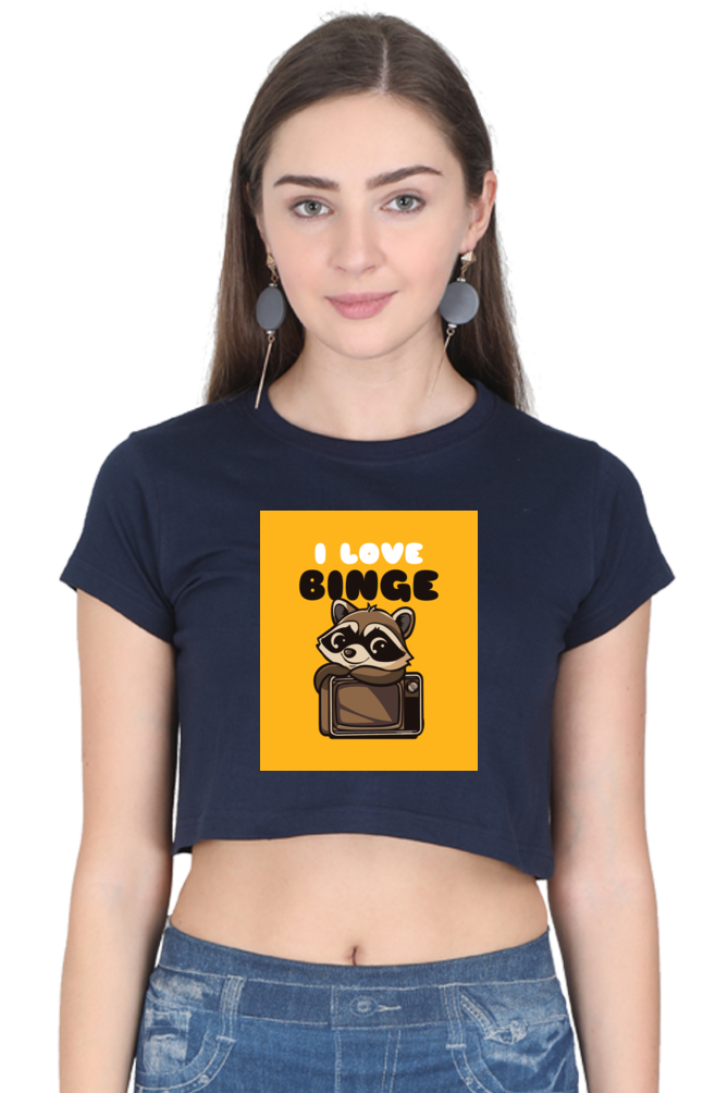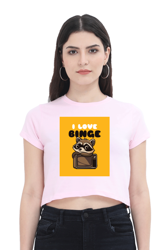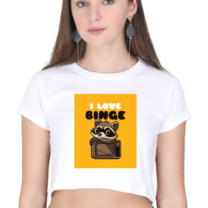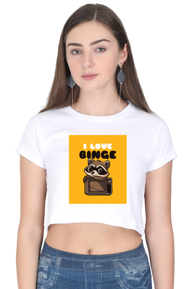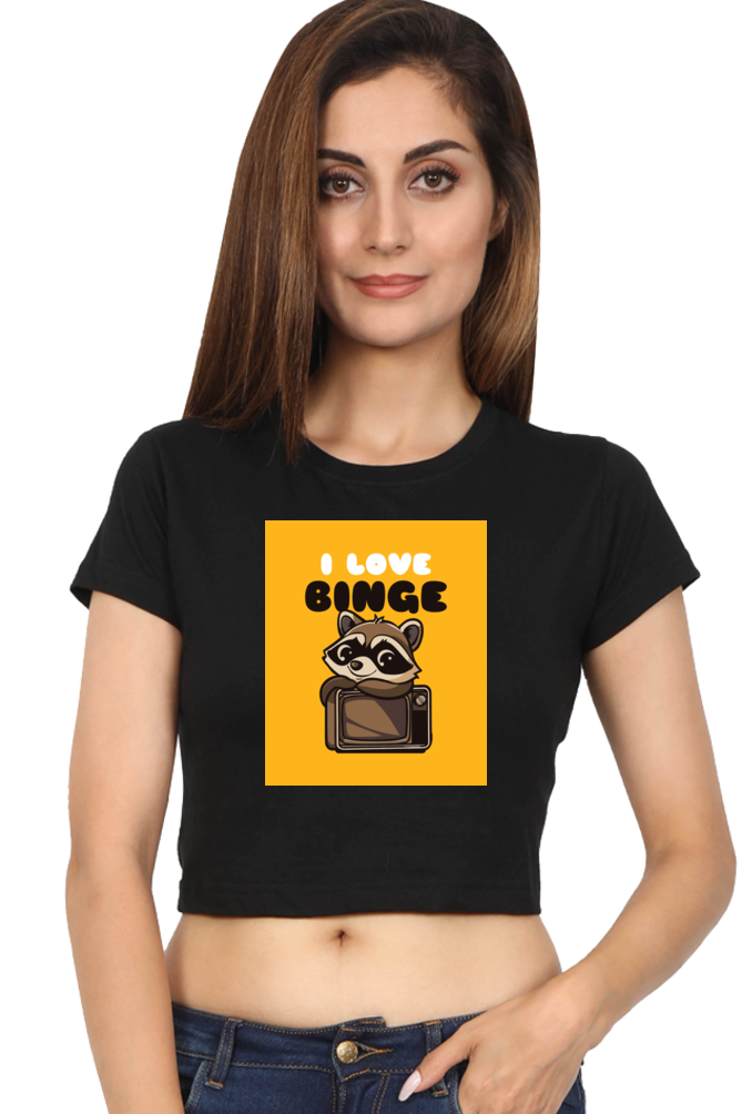 From weekend watch parties to midweek “just one more episode” nights, the “I Love Binge” Crop Top is your perfect streaming sidekick.